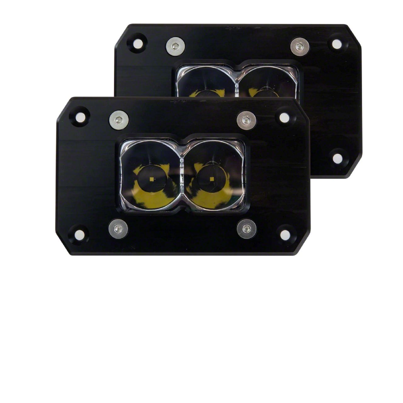 Description. The Heretic BA-2 Flush Mount LED Light Pod is our staple flush bezel mount light pod used for various applications from an optimal chase light to a ditch light, A-pillar light and beyond. These high performance clear LED pod lights are designed and manufactured in the USA, housed in CNC machined aircraft-grade aluminum, and outfitted with best-in-class circuit boards that allow temperature control and long-lasting light. The BA-2 Flush Mount LED Light Pod is recommended on the front or rear bumpers of trucks, jeeps, SUVs, and UTVS. They can also be used on the sides and rear of roof racks as a chase light. These light pods are best for clear night conditions