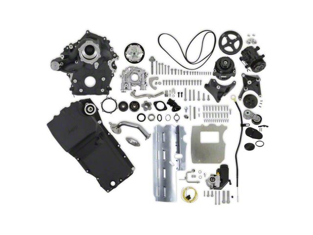 Description. Holley is proud to present our revolutionary high-mount accessory drive and oiling system for the Ford 7.3-liter Godzilla Engine. With our patent-pending technology, we have integrated the timing cover, oil pump, oil pan, water pump, alternator, and the option for A/C and/or P/S, all in one streamlined system. Furthermore, this versatile accessory drive is compatible with both factory crank pulleys and aftermarket damper/pulleys.