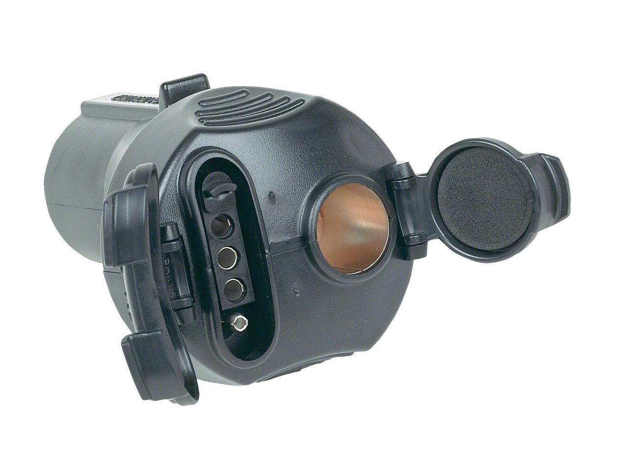 Description. Trailer Wiring Adapter Connector; Multi-Tow® 7 Blade To 5/4 Flat And 12 Volt Adapter; Turns Your 7 Blade Connector Into A 12 Volt Power Socket; Incl. A Dust Cover To Protect Terminals When Not In Use;