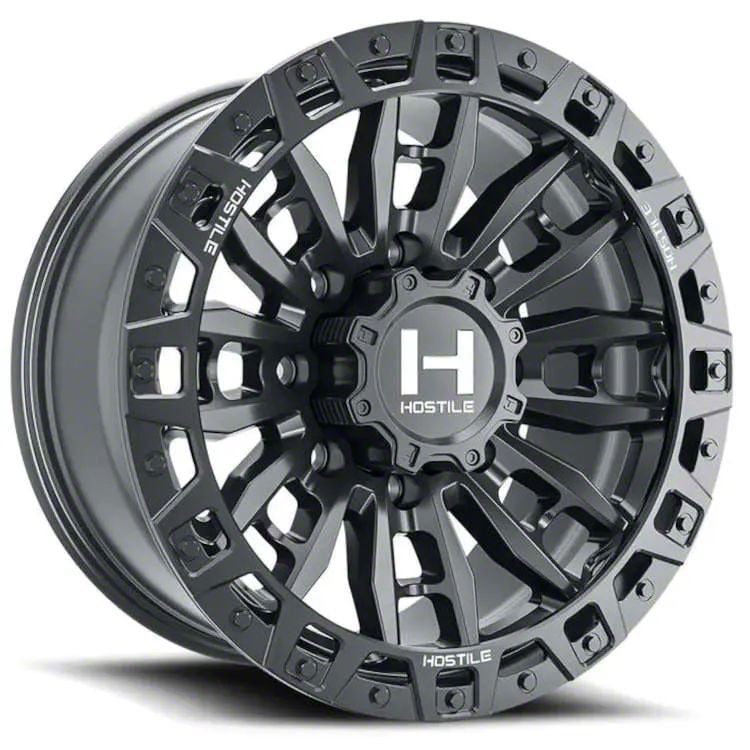 Hostile Crandon Asphalt 8-Lug Wheel; 18x9; 12mm Offset. The Hostile Crandon Asphalt 8-Lug Wheel offers a striking balance of style and refinement. Its unique design accentuates the vehicle's aesthetic, while the premium construction underscores its robust nature. This wheel is a perfect choice for those seeking both elegance and a strong visual statement.