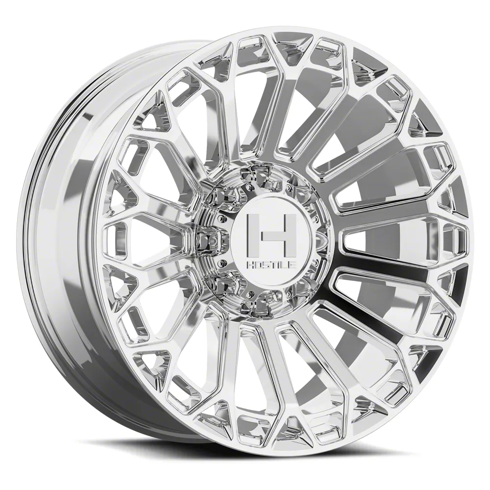 The 22x10 Hostile Warrior Armor Plated 8-Lug Wheel is completed in a high-quality chrome finish that is accomplished in a 3-step plating process. First layer is copper, which creates a smooth foundation. Next is nickel for hardness and durability. Finally, chrome for brightness.