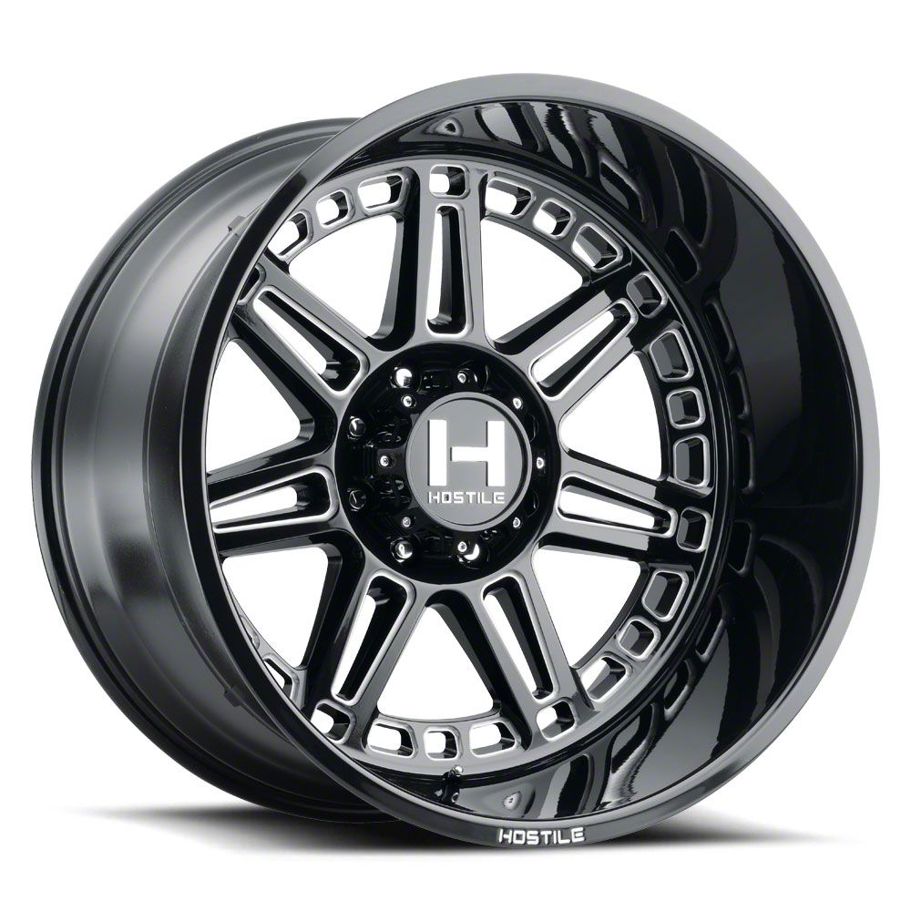 This 22x10 Hostile Lunatic Blade Cut 8-Lug Wheel is completed in a high-quality gloss black finish with milled accents to create an impressive appearance. There's a durable clear coat that protects against driving hazards.