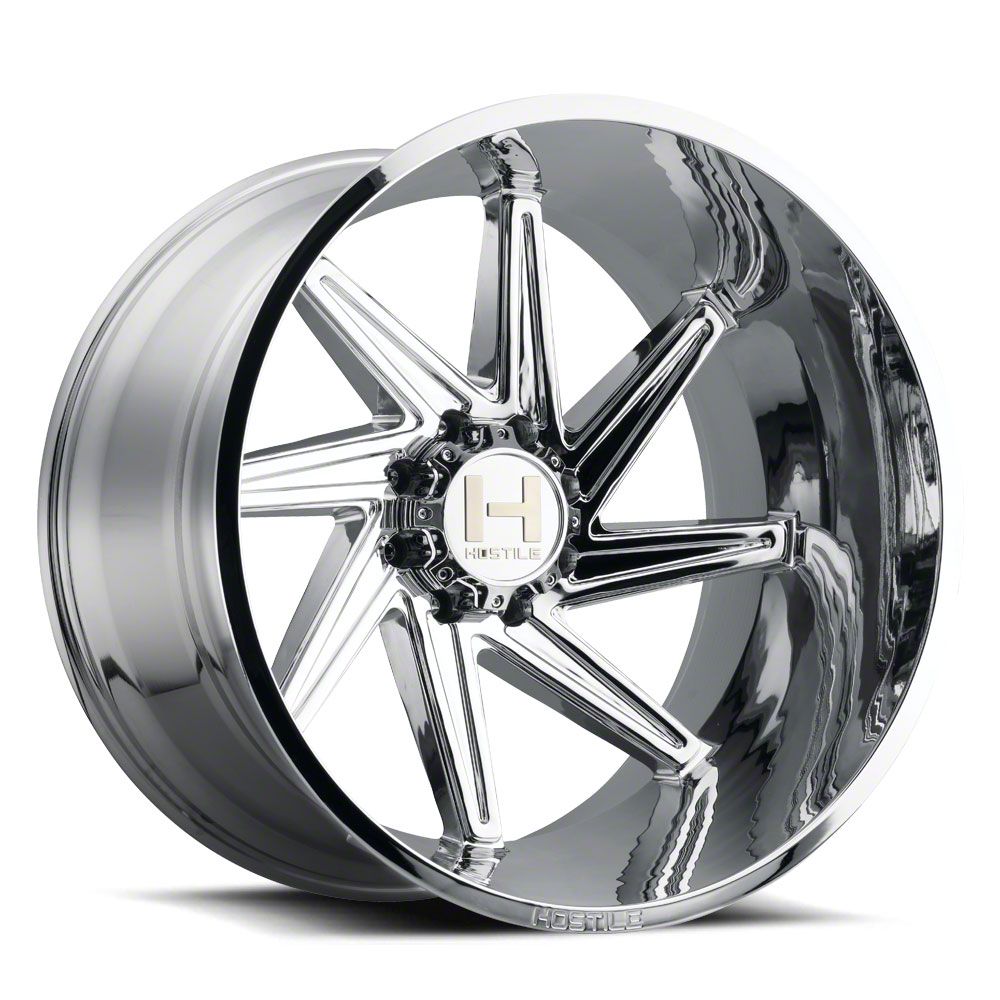 The 22x12 Hostile Dagr Armor Plated 8-Lug Wheel; Right Directional; 22x12; -44mm Offset is completed in a high-quality armor plated finish, which is sure to turn heads. There is a durable clear coat for extra protection and enhanced appearance that can withstand the rigors of the road.