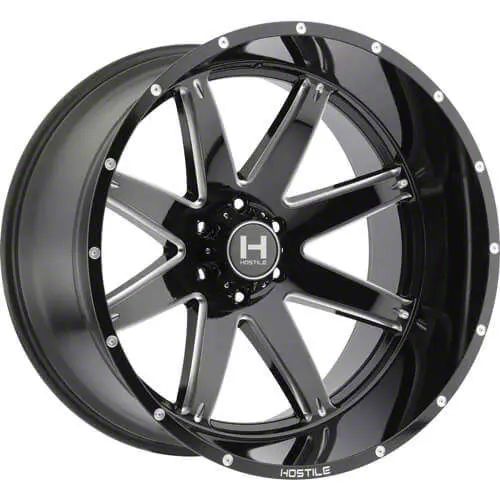 This 22x12 Hostile Alpha Blade Cut 6-Lug Wheel is completed in a high-quality gloss black finish with milled accents to create an impressive appearance. There's a durable clear coat that protects against driving hazards.