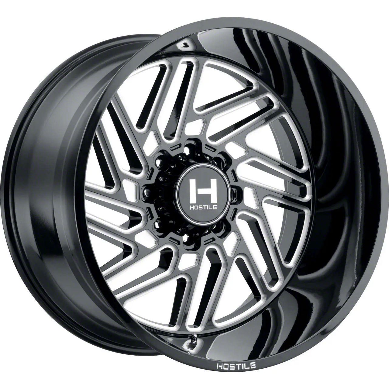 This 22x12 Hostile Jigsaw Blade Cut 6-Lug Wheel is completed in a high-quality gloss black finish with milled accents to create an impressive appearance. There's a durable clear coat that protects against driving hazards.