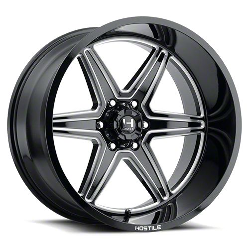 This 20x10 Hostile Venom Blade Cut 6-Lug Wheel is completed in a high-quality gloss black finish with milled accents to create an impressive appearance. There's a durable clear coat that protects against driving hazards.