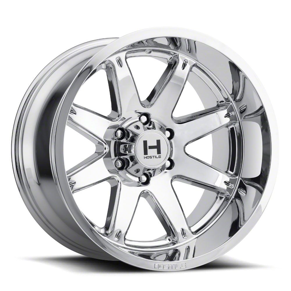 The 24x14 Hostile Alpha Armor Plated 6-Lug Wheel is completed in a high-quality chrome finish that is accomplished in a 3-step plating process. First layer is copper, which creates a smooth foundation. Next is nickel for hardness and durability. Finally, chrome for brightness.