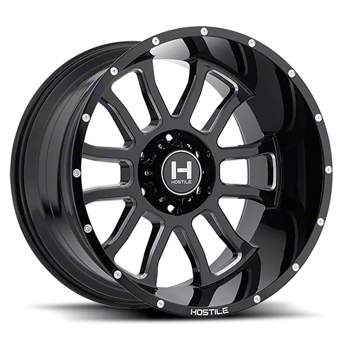 This 20x10 Hostile Gaunlet Blade Cut 6-Lug Wheel is completed in a high-quality gloss black finish with steel milled accents that will be the envy of everyone. There's a durable clear coat that protects against driving hazards.One-Piece Cast Aluminum Construction. This wheel is manufactured using gravity casting. Gravity casting is the process of pouring a molten aluminum alloy into a wheel mold or form utilizing the earth's own gravity to help fill the mold. The result is a strong, durable wheel that has the same good looks as a more expensive wheel, at a fraction of the price.
