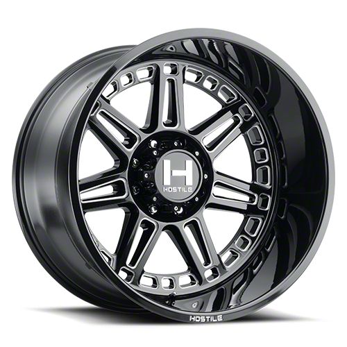 This 20x9 Hostile Lunatic Blade Cut 8-Lug Wheel is completed in a high-quality gloss black finish with steel milled accents that will be the envy of everyone. There's a durable clear coat that protects against driving hazards.One-Piece Cast Aluminum Construction. This wheel is manufactured using gravity casting. Gravity casting is the process of pouring a molten aluminum alloy into a wheel mold or form utilizing the earth's own gravity to help fill the mold. The result is a strong, durable wheel that has the same good looks as a more expensive wheel, at a fraction of the price.
