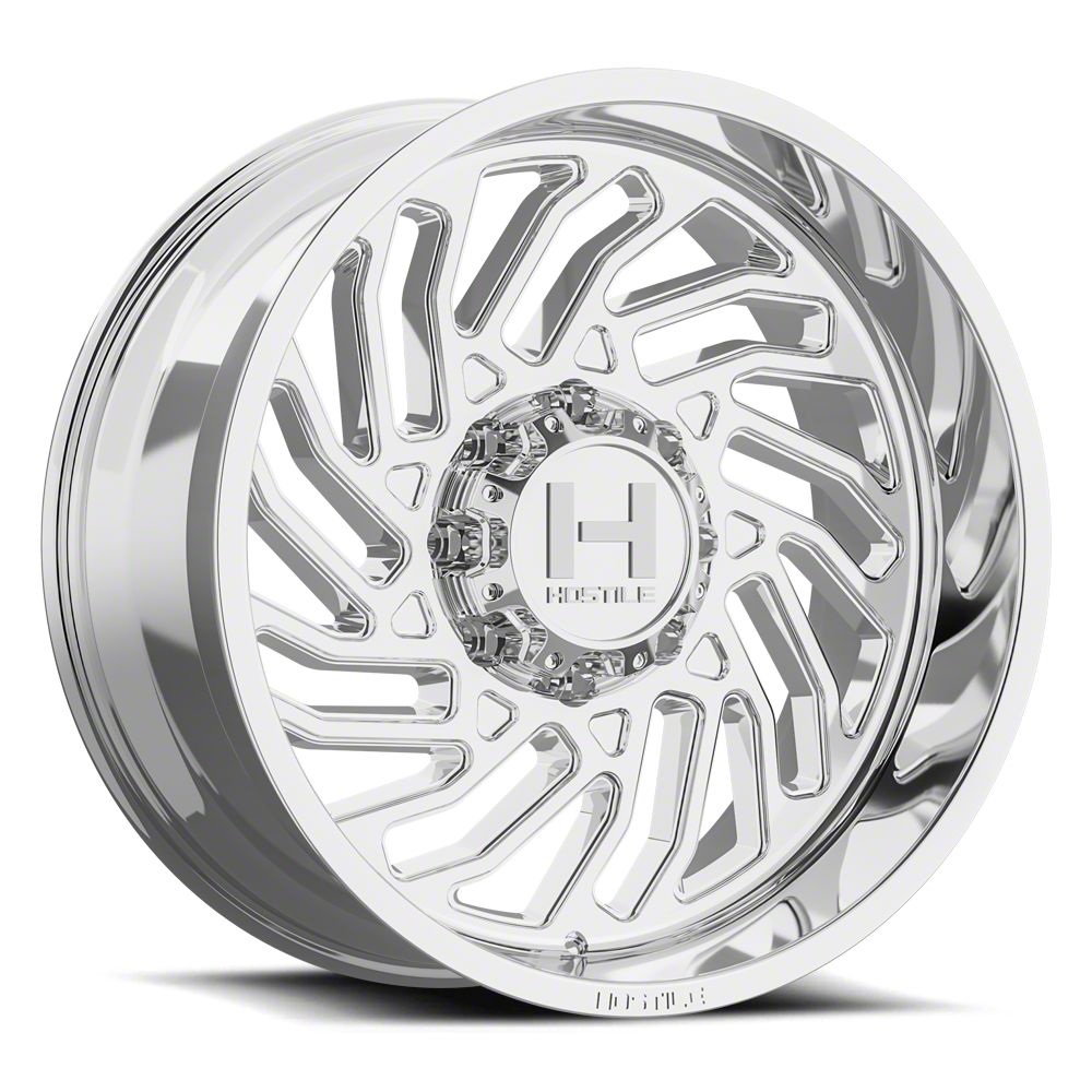The 22x10 Hostile Twister Armor Plated 8-Lug Wheel is completed in a high-quality chrome finish that is accomplished in a 3-step plating process. First layer is copper, which creates a smooth foundation. Next is nickel for hardness and durability. Finally, chrome for brightness.
