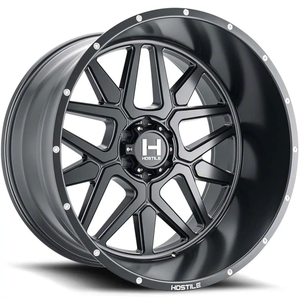 Hostile Diablo Asphalt 6-Lug Wheel; 22x12; -44mm Offset exudes sophistication with its finish, offering a sleek and modern appeal to any vehicle it adorns. The design is meticulously crafted to enhance the aesthetic of your vehicle, giving it a distinctive and upscale look. Perfect for those seeking to elevate their vehicle's style, this wheel blends seamlessly with both contemporary and classic vehicle designs, making it a versatile choice for a wide range of vehicles. Its robust construction ensures durability, making it a reliable choice for drivers who value both style and quality.