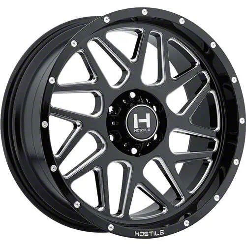 This 20x12 Hostile Sprocket Blade Cut 6-Lug Wheel is completed in a high-quality gloss black finish with milled accents to create an impressive appearance. There's a durable clear coat that protects against driving hazards.