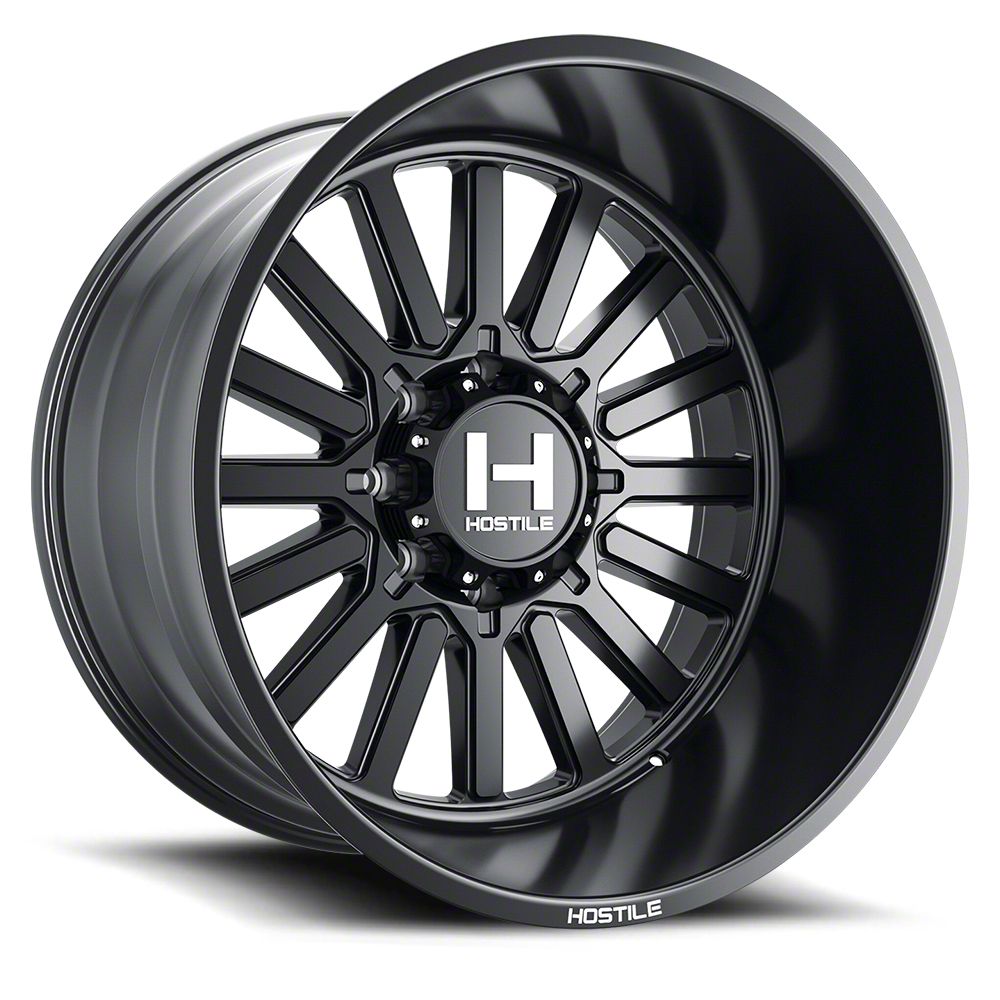 This 20x12 Hostile Titan Asphalt 8-Lug Wheel is completed in a high quality asphalt black finish for an aggressive appearance that will make others green with envy. A durable clear coat that withstands the rigors of driving.