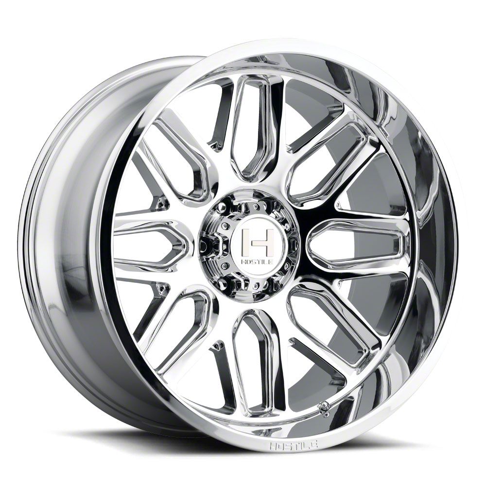 The 24x12 Hostile Vulcan Armor Plated 8-Lug Wheel is completed in a high-quality chrome finish that is accomplished in a 3-step plating process. First layer is copper, which creates a smooth foundation. Next is nickel for hardness and durability. Finally, chrome for brightness.