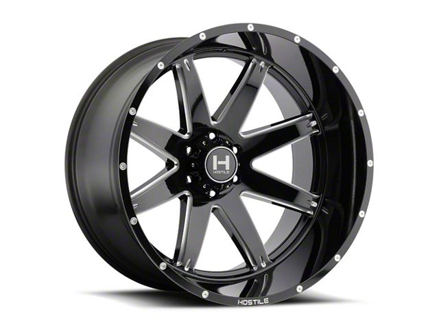 The 22x14 Hostile Alpha Blade Cut 6-Lug Wheel is completed in a high-quality gloss black finish with steel milled accents for an aggressive appearance. For added protection and good looks, there is a durable clear coat that withstands the rigors of everyday driving.