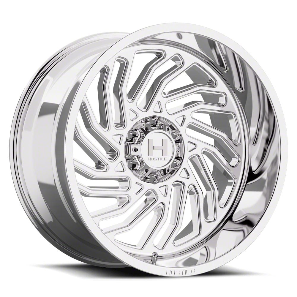 The 20x10 Hostile Twister Armor Plated 6-Lug Wheel is completed in a high-quality chrome finish that is accomplished in a 3-step plating process. First layer is copper, which creates a smooth foundation. Next is nickel for hardness and durability. Finally, chrome for brightness.