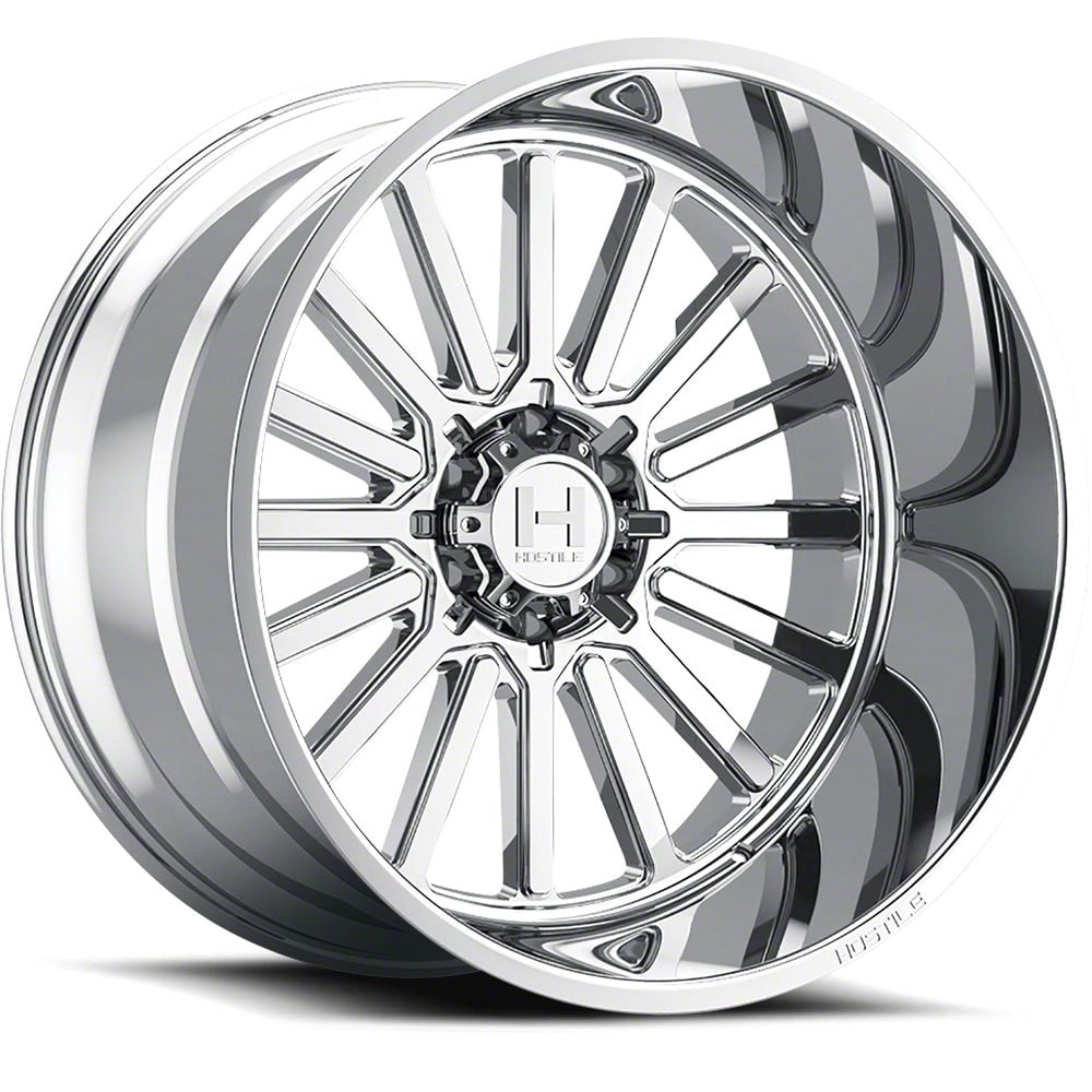 The 22x12 Hostile Titan Armor Plated 8-Lug Wheel is completed in a high-quality chrome finish that is accomplished in a 3-step plating process. First layer is copper, which creates a smooth foundation. Next is nickel for hardness and durability. Finally, chrome for brightness.