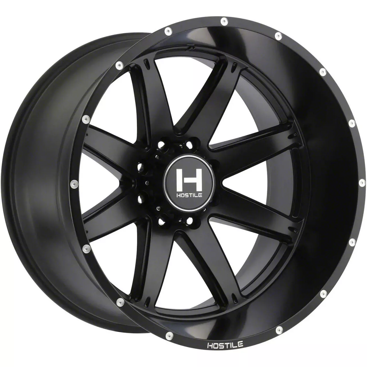 This 20x12 Hostile Alphasphalt 8-Lug Wheel is completed in a high quality asphalt black finish for an aggressive appearance that will make others green with envy. A durable clear coat that withstands the rigors of driving.