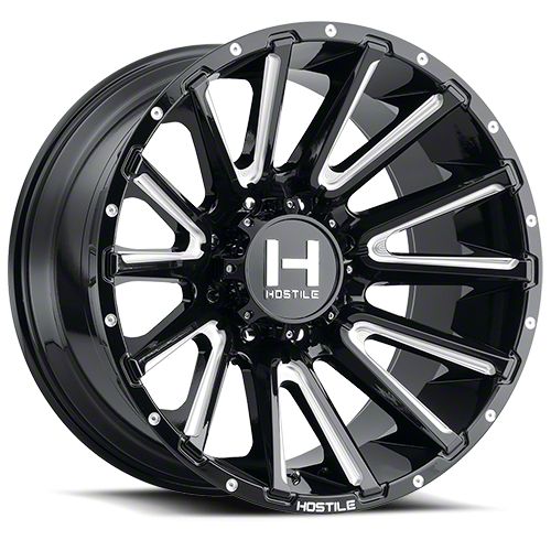 This 20x12 Hostile Typhoon Blade Cut 8-Lug Wheel is completed in a high-quality gloss black finish with steel milled accents that will be the envy of everyone. For added protection and looks, there is a durable clear coat that can handle the rigors of daily driving.