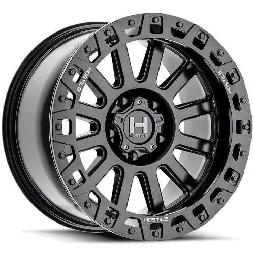 Hostile Dominator Asphalt 6-Lug Wheel; 17x9; 0mm Offset offers a sleek and assertive aesthetic that enhances a vehicle's visual presence. Its gloss black finish amplifies the appeal, making it a great match for bold styling themes. This wheel brings a refined edge to any build while maintaining a confident stance on the road. Crafted to elevate the appearance of a wide range of vehicles.