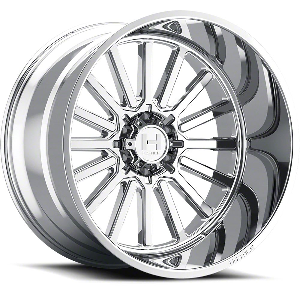 The 22x10 Hostile Titan Armor Plated 6-Lug Wheel is completed in a high-quality chrome finish that is accomplished in a 3-step plating process. First layer is copper, which creates a smooth foundation. Next is nickel for hardness and durability. Finally, chrome for brightness.