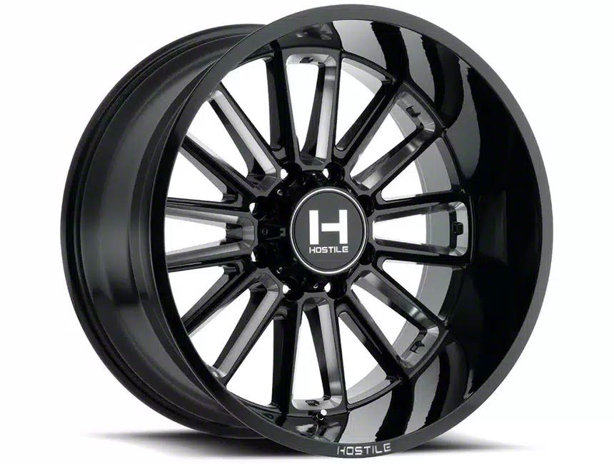 Blade Cut Finish. This Hostile Wheel is completed in a high quality, black finish with machined accents for an impressive contrast in appearance that will make onlookers green with envy. For added protection and good looks, this Wheel features a durable clear coat that is tough enough to stand up against the hazards of everyday driving - including road chips and pitting.