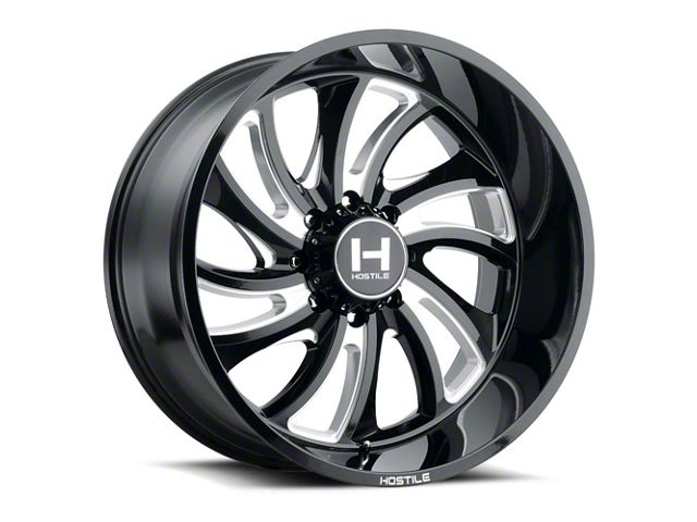 Hostile Demon Blade Cut 8-Lug Wheel; 24x14; -76mm Offset offers a sleek and assertive aesthetic that enhances a vehicle's visual presence. Its gloss black finish amplifies the appeal, making it a great match for bold styling themes. This wheel brings a refined edge to any build while maintaining a confident stance on the road. Crafted to elevate the appearance of a wide range of vehicles.