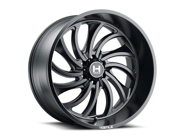 Hostile Demon Asphalt 6-Lug Wheel; 24x12; -56mm Offset offers a sleek and assertive aesthetic that enhances a vehicle's visual presence. Its gloss black finish amplifies the appeal, making it a great match for bold styling themes. This wheel brings a refined edge to any build while maintaining a confident stance on the road. Crafted to elevate the appearance of a wide range of vehicles.