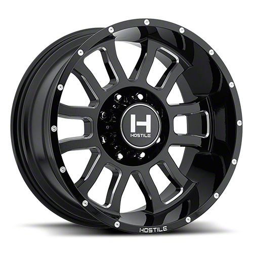 This 20x12 Hostile Gaunlet Blade Cut 8-Lug Wheel is completed in a high-quality gloss black finish with milled accents to create an impressive appearance. There's a durable clear coat that protects against driving hazards.