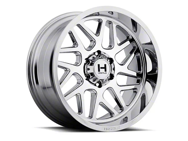 The 20x10 Hostile Sprocket Armor Plated 5-Lug Wheel is completed in a high-quality chrome finish that is accomplished in a 3-step plating process. First layer is copper, which creates a smooth foundation. Next is nickel for hardness and durability. Finally, chrome for brightness.