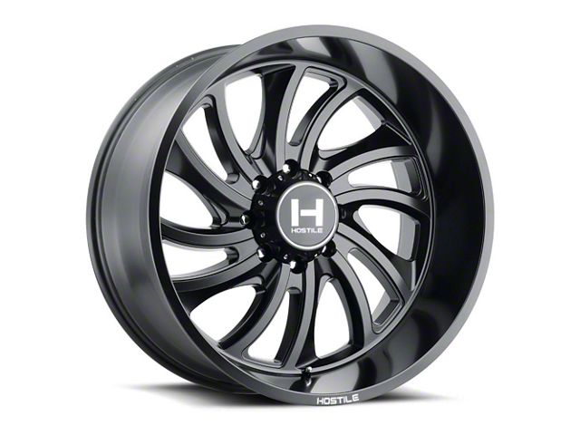 Hostile Demon Asphalt 8-Lug Wheel; 24x14; -76mm Offset offers a sleek and assertive aesthetic that enhances a vehicle's visual presence. Its gloss black finish amplifies the appeal, making it a great match for bold styling themes. This wheel brings a refined edge to any build while maintaining a confident stance on the road. Crafted to elevate the appearance of a wide range of vehicles.