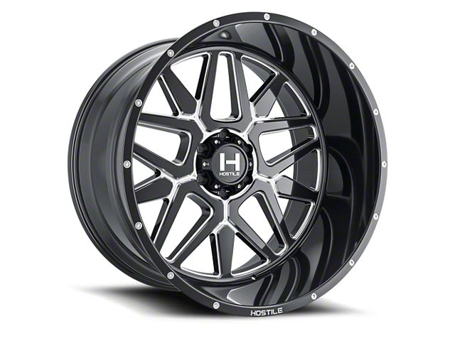 The 24x12 Hostile Diablo Blade Cut 6-Lug Wheel is completed in a high-quality gloss black finish with steel milled accents for an aggressive appearance. For added protection and good looks, there is a durable clear coat that withstands the rigors of everyday driving.