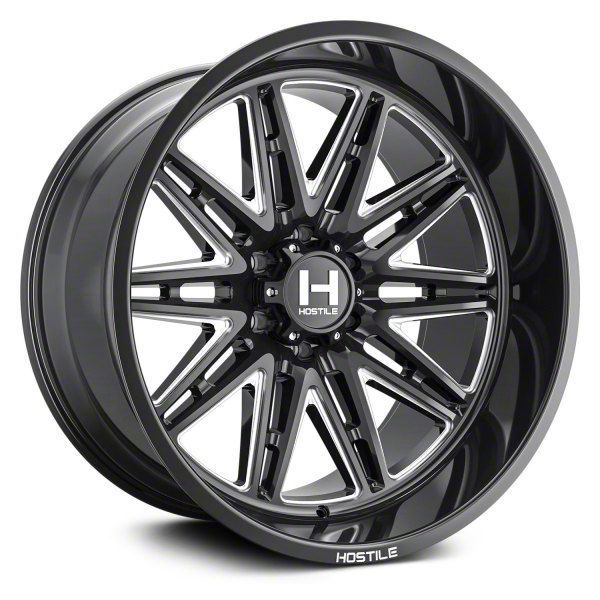 This 20x12 Hostile Maniac Blade Cut 6-Lug Wheel is completed in a high-quality gloss black finish with steel milled accents that will be the envy of everyone. There's a durable clear coat that protects against driving hazards.One-Piece Cast Aluminum Construction. This wheel is manufactured using gravity casting. Gravity casting is the process of pouring a molten aluminum alloy into a wheel mold or form utilizing the earth's own gravity to help fill the mold. The result is a strong, durable wheel that has the same good looks as a more expensive wheel, at a fraction of the price.