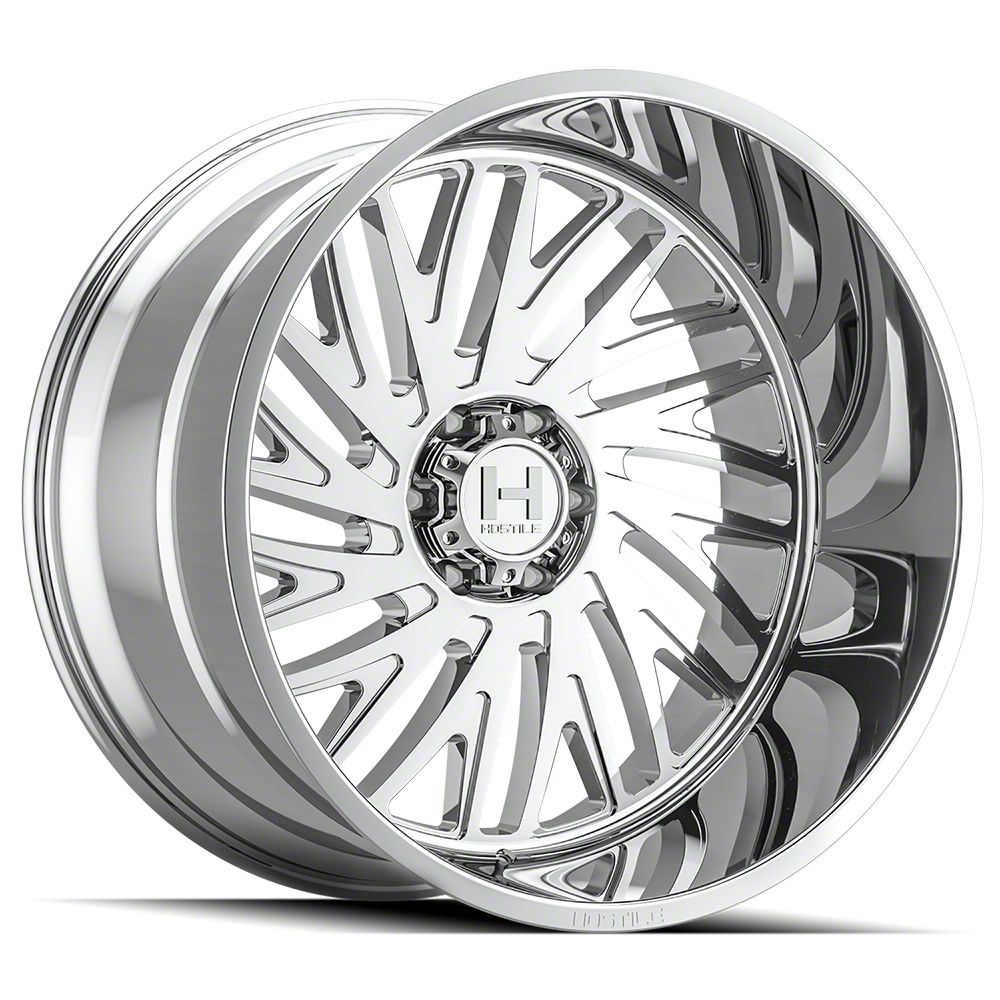 The 24x12 Hostile Syclone Armor Plated 6-Lug Wheel is completed in a high-quality chrome finish that is accomplished in a 3-step plating process. First layer is copper, which creates a smooth foundation. Next is nickel for hardness and durability. Finally, chrome for brightness.