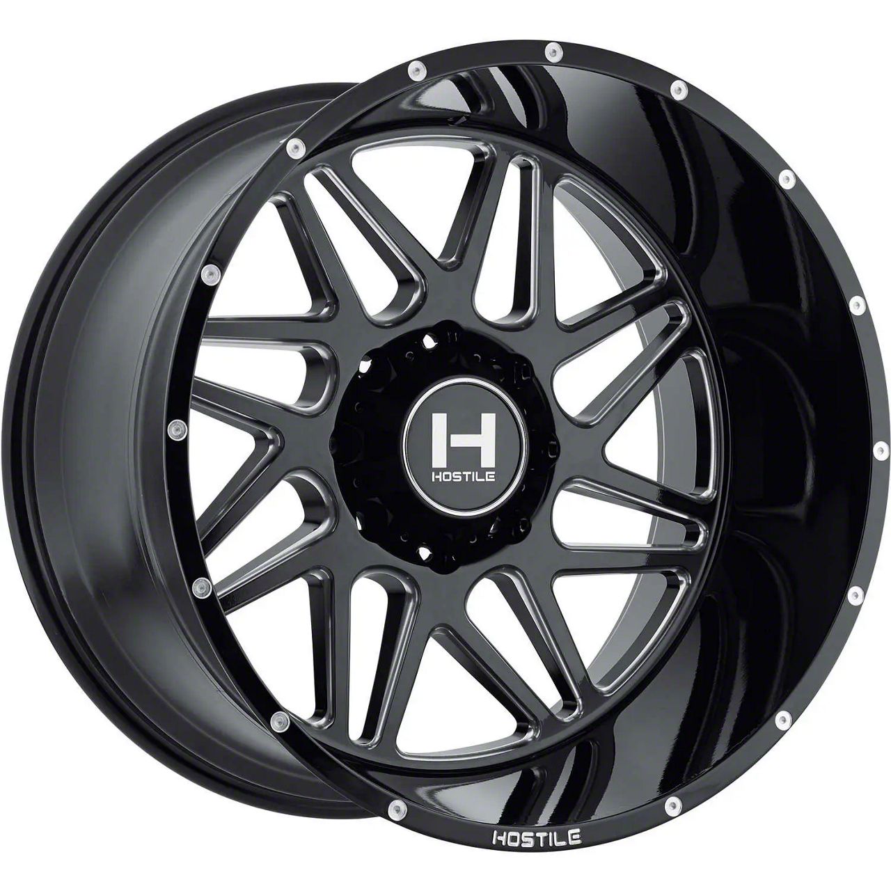 This 20x9 Hostile Sprocket Blade Cut 8-Lug Wheel is completed in a high-quality gloss black finish with milled accents to create an impressive appearance. There's a durable clear coat that protects against driving hazards.