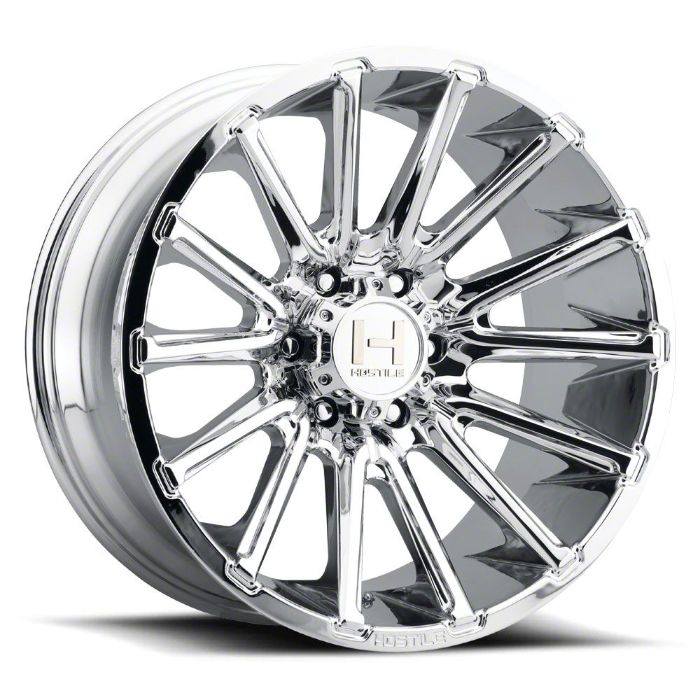 The 20x12 Hostile Typhoon Armor Plated 8-Lug Wheel is completed in a high-quality chrome finish that is accomplished in a 3-step plating process. First layer is copper, which creates a smooth foundation. Next is nickel for hardness and durability. Finally, chrome for brightness.