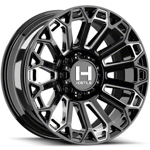 Hostile Warrior Blade Cut 8-Lug Wheel; 20x12; -44mm Offset offers a sleek and assertive aesthetic that enhances a vehicle's visual presence. Its gloss black finish amplifies the appeal, making it a great match for bold styling themes. This wheel brings a refined edge to any build while maintaining a confident stance on the road. Crafted to elevate the appearance of a wide range of vehicles.