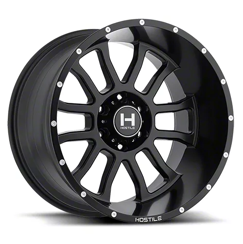 Hostile Gaunlet Asphalt 6-Lug Wheel; 20x10; -19mm Offset. The Hostile Gaunlet Asphalt 6-Lug Wheel offers a striking balance of style and refinement. Its unique design accentuates the vehicle's aesthetic, while the premium construction underscores its robust nature. This wheel is a perfect choice for those seeking both elegance and a strong visual statement.