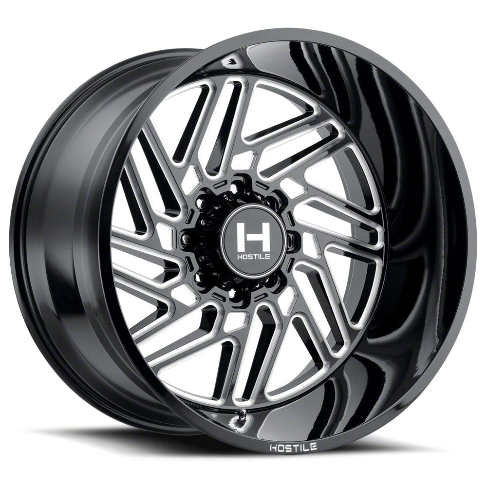 The 24x14 Hostile Jigsaw Blade Cut 6-Lug Wheel is completed in a high-quality gloss black finish with steel milled accents for an aggressive appearance. For added protection and good looks, there is a durable clear coat that withstands the rigors of everyday driving.