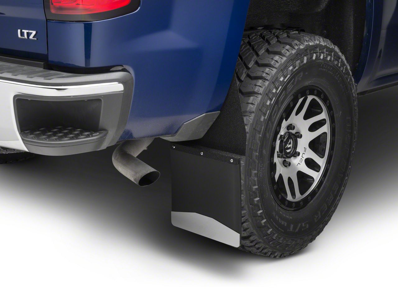 Fender Protection. Protect the fenders of your 2007 to 2026 Chevy Silverado from flying debris during off-road adventures with these Husky 12 in. Wide KickBack Mud Flaps with a Textured Black Top and Stainless Steel Weights. These mud flaps are ideal for Silverado owners that want a durable option that coordinates with the existing black trim accents.