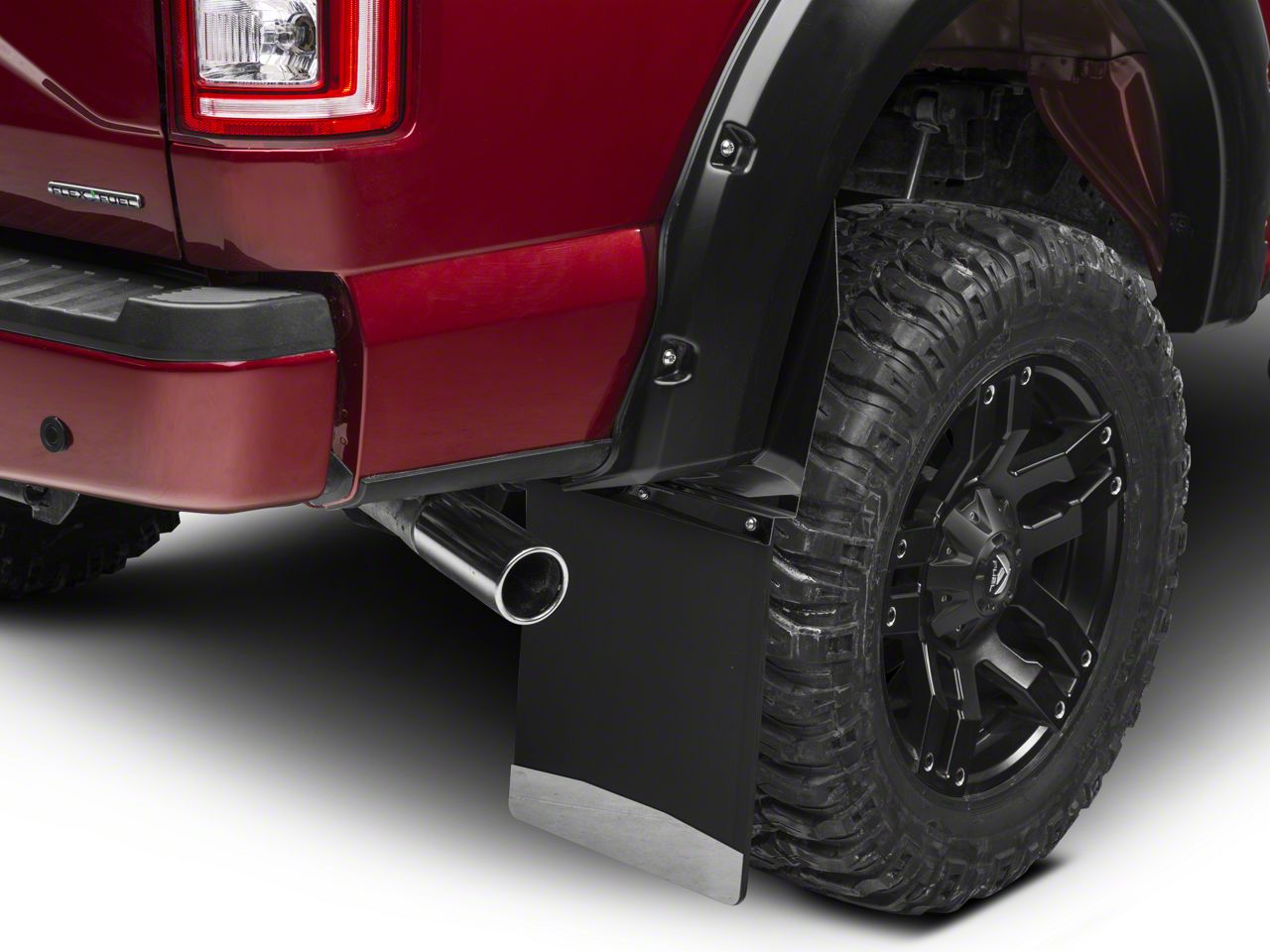 Show Your Monster Some Love. Husky 14-inch Wide KickBack Mud Flaps are made specifically for 1997-2026 F-150 models that have had oversized tires installed. The included heavy-duty 18-gauge steel mounting bracket allows you to mount your mud flap to add extra clearance to protect your surroundings from whatever your tires kick up. The wider width of the flap extends past your tires to add additional protection.