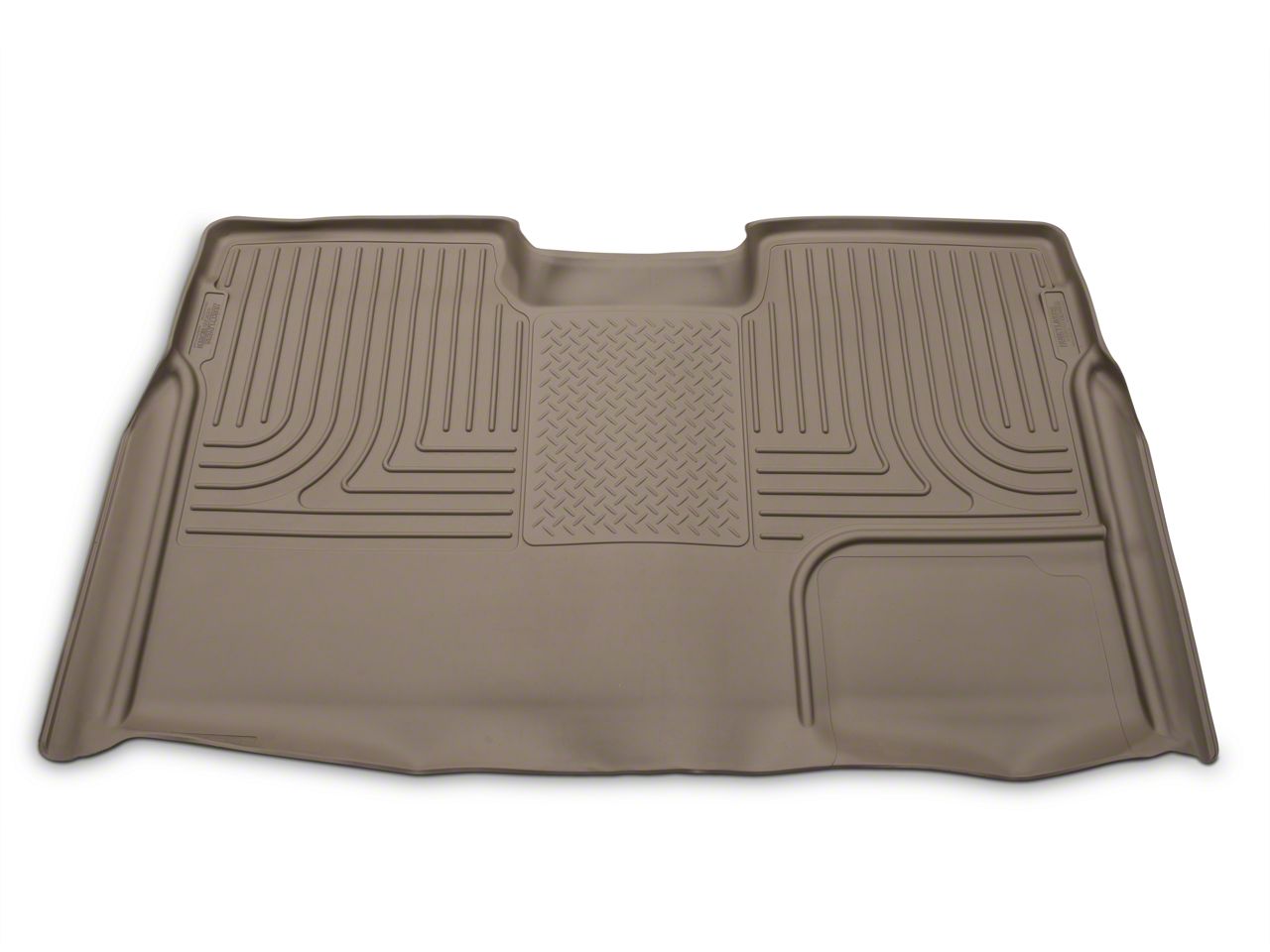 Rear Floor Protection. Protect your expensive and hard to clean carpet in your F-150 SuperCrew with Husky's WeatherBeater 2nd Seat Floor Liner. This full coverage Tan Floor Liner was specially designed for the second row completely covering your carpet from any damage. The thermoplastic material is resistant to most chemicals, spills, stains and mud. Preventing stains in a truck isn't always easy but with the WeatherBeater mats, you can rest easy knowing that your carpets are being protected.