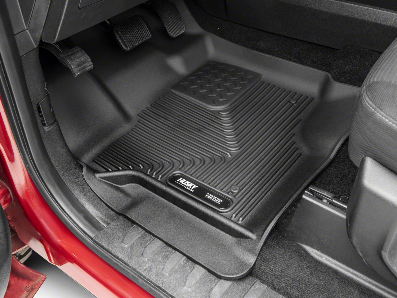 Keep It Clean. Make sure the interior of you F-150 stays clean, no matter the mess with these Husky X-Act Contour Front and Second Seat Floor Liners; Black. Built to absorb and stay in place, these floor liners will take care of your truck.
