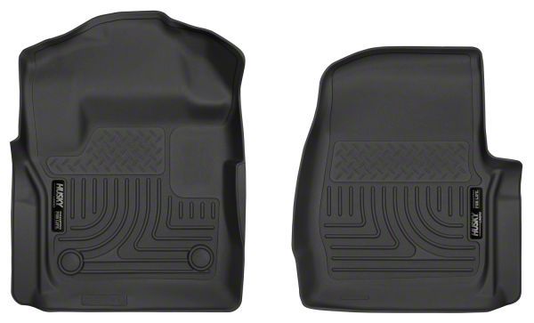 Protect Your Carpet. Representing the cutting edge of floor liner design, Husky's X-Act Contour Front Floor Liners; Black fit in the front floor area of your Super Duty. This liner fully contains liquids and other messes such as dirt and mud. It can even withstand more harmful liquids like battery acid, oil, and gas. It features durable Acring ribs that keeps liquid in dirt at the very bottom of the liner, keeping your shoes out of the liquid.