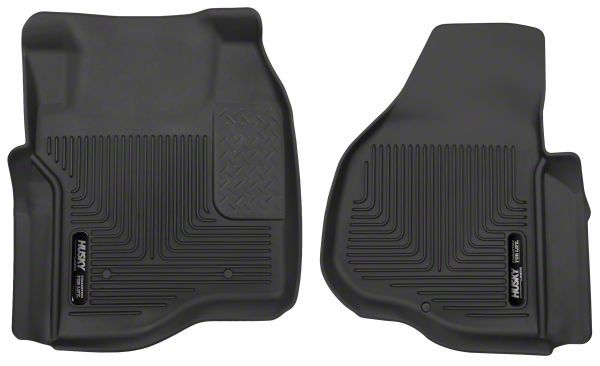 Protect Your Carpet. Representing the cutting edge of floor liner design, Husky's X-Act Contour Front Floor Liners; Black fit in the front floor area of your Super Duty. This liner fully contains liquids and other messes such as dirt and mud. It can even withstand more harmful liquids like battery acid, oil, and gas. It features durable Acring ribs that keeps liquid in dirt at the very bottom of the liner, keeping your shoes out of the liquid.