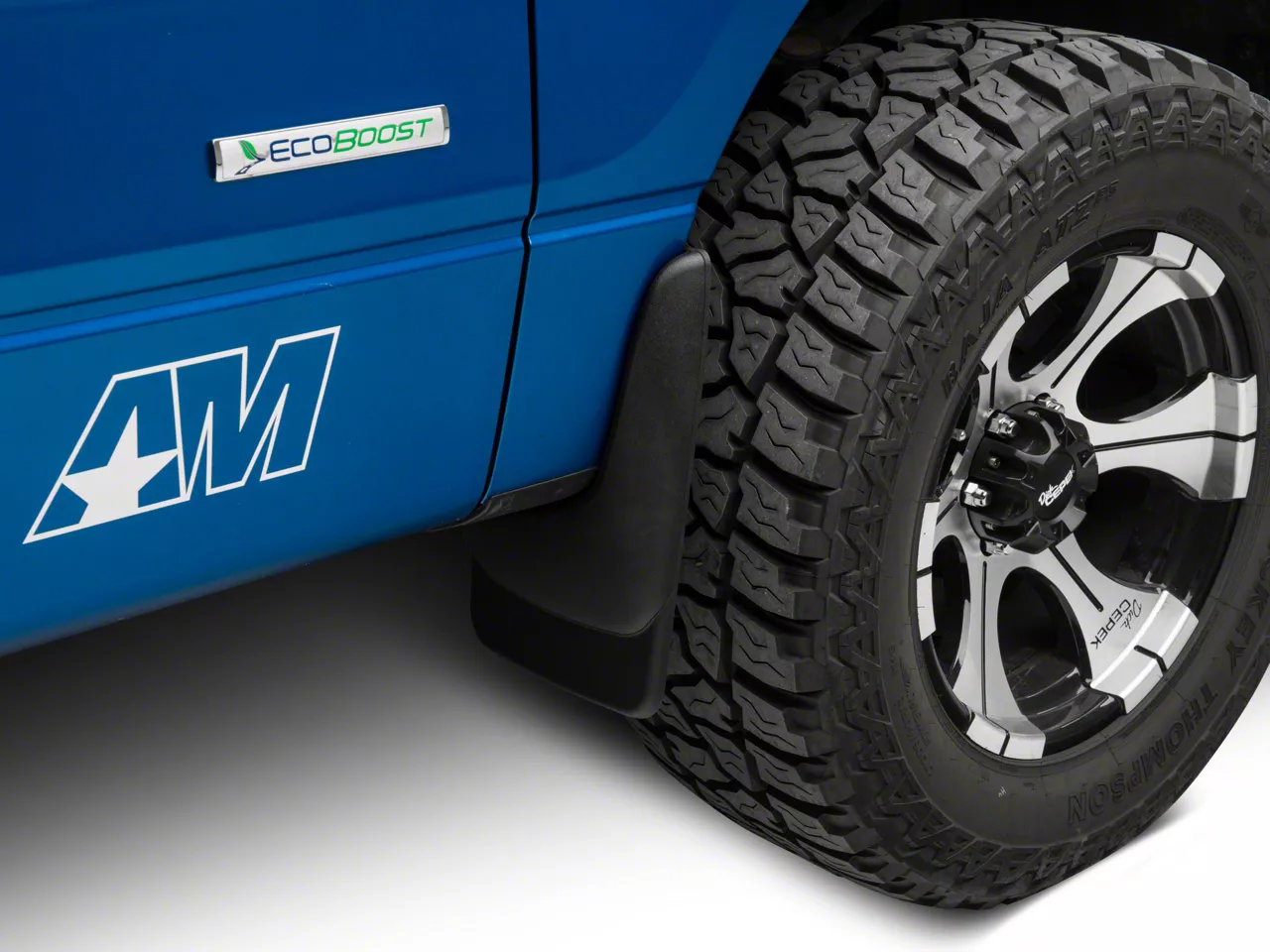 Protection. Keep your F-150 looking showroom perfect with a set of Husky Front Mud Flaps. Flying rocks and debris can do a number on your truck's paint, but a set of Husky Mud Flaps will keep them down on the ground or asphalt - where they belong - and off your rig. So keep your truck's finish worthy of braggin' rights no matter how far off the beaten path you're going with a set of these heavy duty mud flaps.