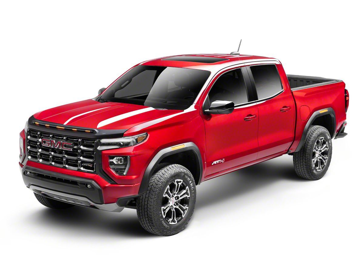 Illuminated Front-End Protection. The Husky Liners Aeroskin Lightshield Pro Hood Protector adds a rugged, illuminated edge to the front of 2023-2026 GMC Canyon models, combining impact defense with integrated amber lighting for extra presence. Purpose-built to shield the leading edge from chips and scuffs, it pairs sleek styling with practical protection so your paint stays cleaner and your vehicle stands out day or night.