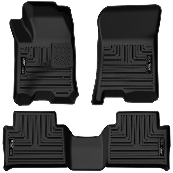 Uncompromised Floor Protection. Embark on an adventure without worrying about the cleanliness of your vehicle's interior with the Husky Liners X-Act Contour Front and Second Seat Floor Liners; Black. Designed to provide laser-fit toughness, these mats safeguard your floorboards from all sorts of debris and spills. Their precise FormFit Design contours seamlessly to your vehicle, ensuring complete coverage and protection, no matter where your journey takes you.