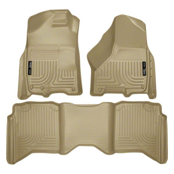 Application. These tan Husky WeatherBeater Front & 2nd Seat Floor Liners are measured to fit 2010-2018 RAM 2500Crew Cabs.