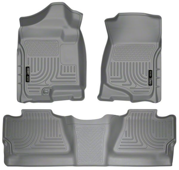 Application. These Husky WeatherBeater Front and Second Seat Floor Liners; Footwell Coverage; Gray are designed to fit 2007-2014 GMC Sierra 3500 HD Crew Cab models.